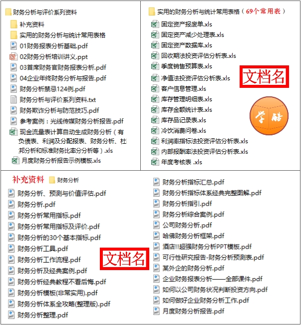 财务分析与评价 2021-10-19 本培训资料的内容包括三部分内容:一是学习讲义:财务报表分析基础、财务分析培训讲义、财务总监财务报表分析、企业年终财务分析与报告;二是提供财务分析禁忌与防范欺诈分析技巧以及现实案例示范;三是提供近80个实用的财务分析与统计常用表格。