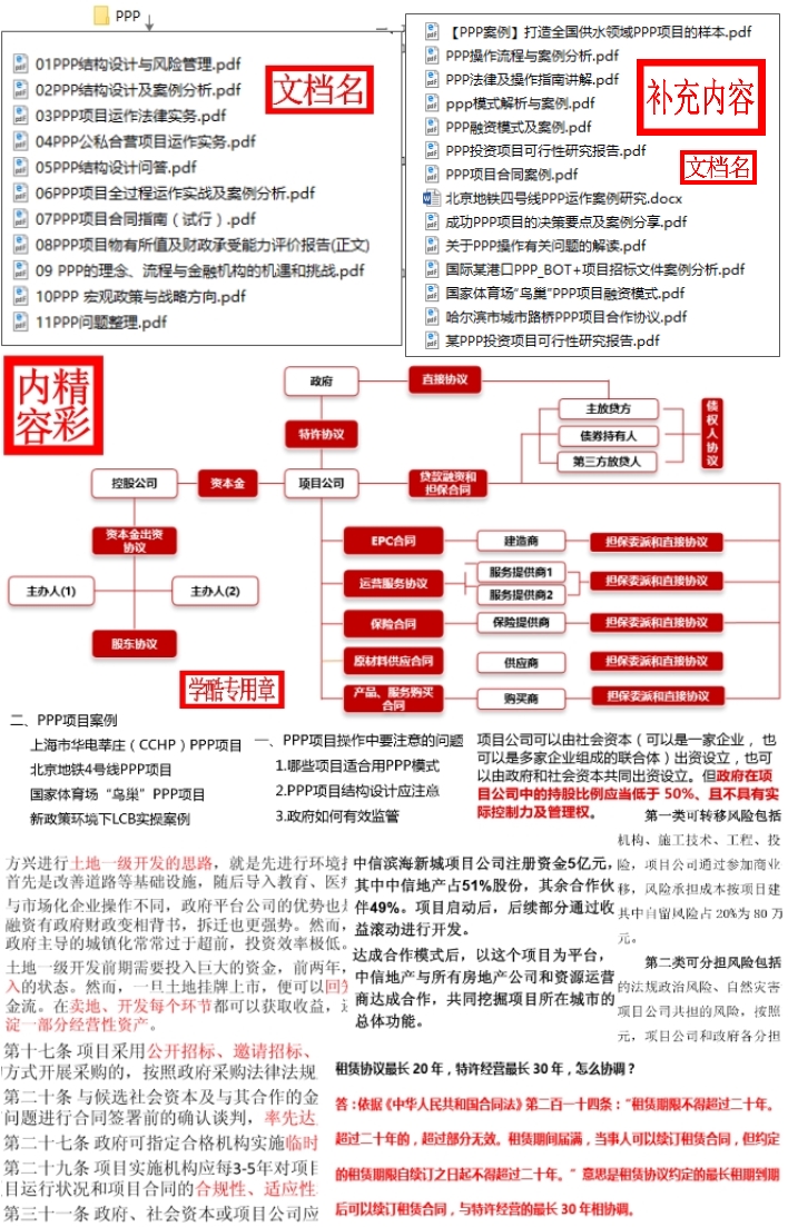 PPP专题资料汇编 2021-10-19 PPP(Public-Private Partnership),又称PPP模式,即政府和社会资本合作,是公共基础设施中的一种项目运作模式。在该模式下,鼓励私营企业、民营资本与政府进行合作,参与公共基础设施的建设。本专题资料系统和全面,包括PPP 宏观政策与战略方向、PPP理念与流程、PPP公私合营项目运作实务、PPP结构设计及风险管理、PPP项目全过程运作实战及案例分析、PPP项目运作法律实务、PPP项目合同指南、评价报告等内容。