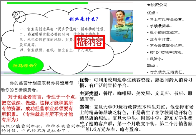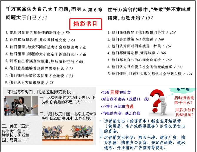 创业起步教程 2021-10-19 创业者应该具备的素质是有主动性、洞察力和勇气,创业者应该要有一个明确的远景规划与商业模式,知道创业的切入点和发展路径。本套学习资料内容包括:一是创业的困难与创业者应该具备的创业素质,二是创业者如何制定商业模式与发展策略,三是成功创业者的经典案例,四是心灵鸡汤:创业者励志创业管理经典故事。本套学习资料深出浅入,内容经典,是创业者创业的学习宝典与指南。
