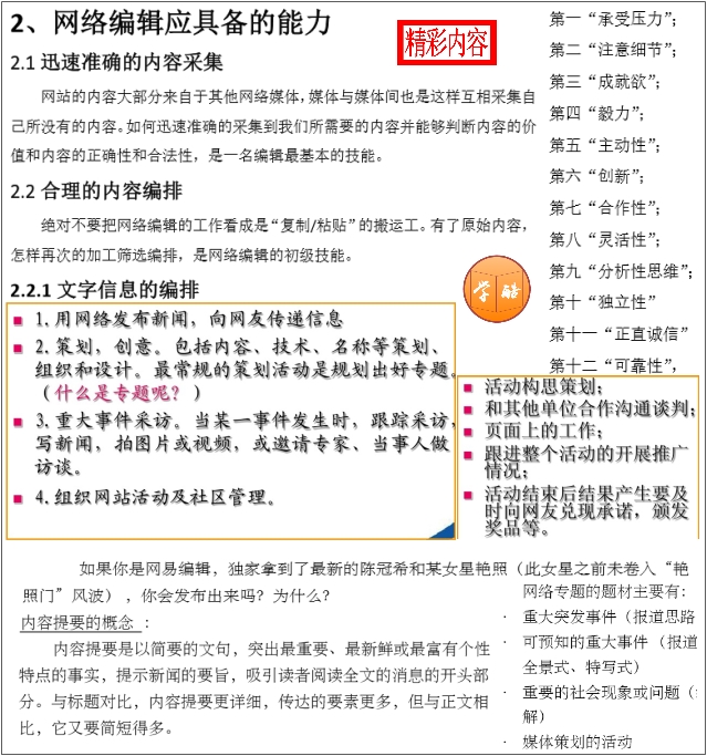 网络编辑 2021-10-19 网络编辑不断但是新媒体时代的“把关人”,更是一位思想者,涉及的知识领域多,工作细。如何才能做到成为一个合格的编辑并成为高级编辑呢?本学习资料不仅包括“网络编辑知识讲座”、“网络编辑的职业素养和绩效考核”、“网络编辑基础知识与技能”,“网络编辑实务汇总”等内容,还包括腾讯、新浪、搜狐网站编辑的内部培训资料以及网路编辑求职简历模板等内容。全部内容的压缩文件40多兆,是您不可多得的学习宝典。