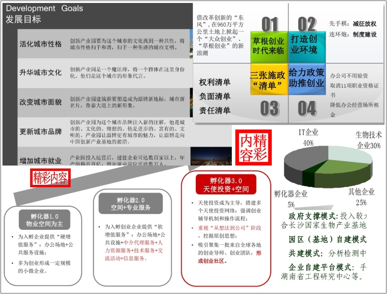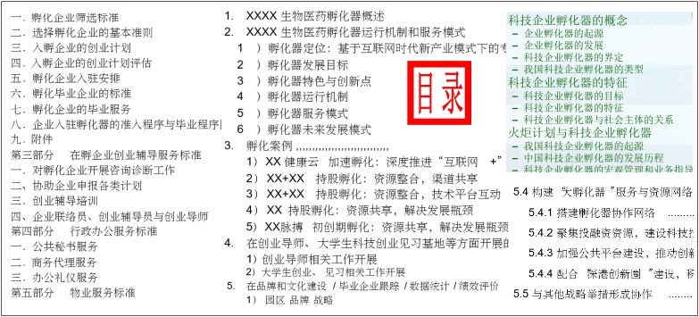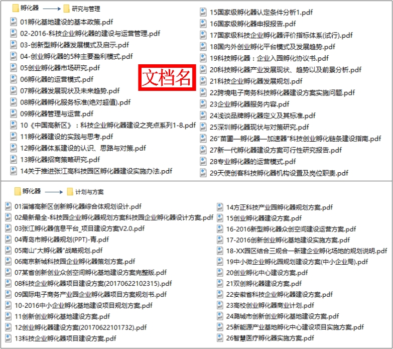 孵化器 2021-09-18 孵化器是以促进科技成果转化、培养高薪技术企业和企业家为宗旨的科技服务机构,国家为支持孵化器的建设与发展出台了一系列政策。本系列资料包括孵化器的研究管理与实践(政策、发炸模式、盈利模式、服务标准、认定条件、评价指标、服务内容、可行性分析、协议、岗位职责)、规划与建设方案(战略规划、综合规划方案、项目建设方案、运营方案、实施方案、商业计划书)等内容。