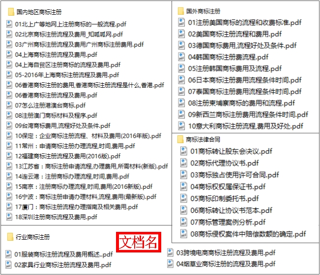 商标管理 2021-09-19 本资料包括:(1)商标知识评估方案:基础知识、国内外分类、评估方法及资料、代理资料、方案等;(2)注册、转让、复审、补办等流程、费用以及时间;(3)商标法律合同:转让决议、代理协议、权属保证书、印制委托书、协议范本、管理案例、侵权赔偿等;(4)国内地区注册:北京、上海、广州、深圳、台湾、香港、澳门、厦门等地区注册;(5)国外注册:美国、日本、韩国、德国、意大利、泰国、新西兰等;(6)行业注册:服装、家具、跨境电商、烟草等。