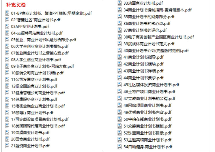 商业计划书 2021-09-19 商业计划书和创业计划书是个人创业或企业发展融资不可或缺的文案。很多人不知道该如何下笔,本学习资料汇集了“商业计划书的写法及注意事项”、“创业计划书写作指南”、“商业计划书的要素及讲义”、“商业计划书案例参考模板”以及“真实计划书案例”,是写作商业计划书的好帮手。