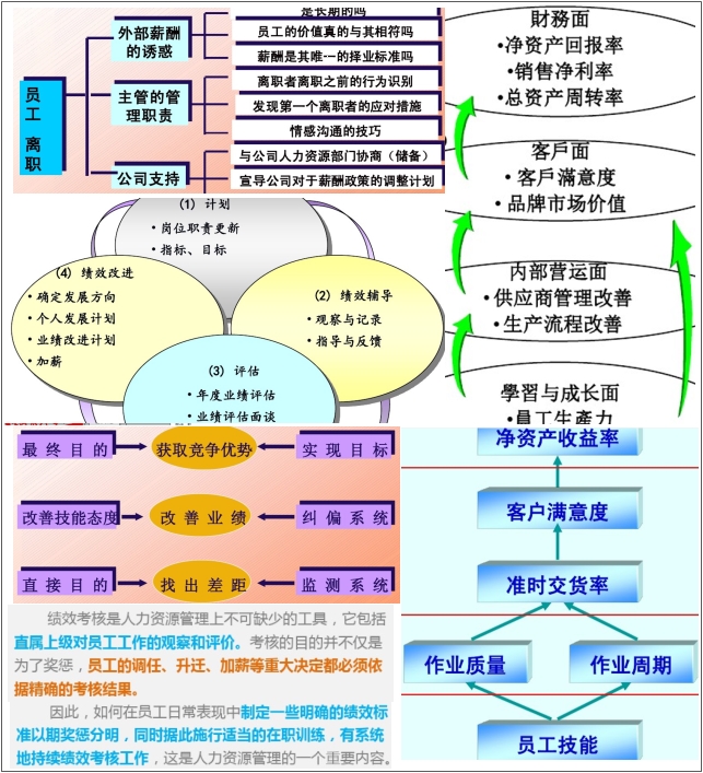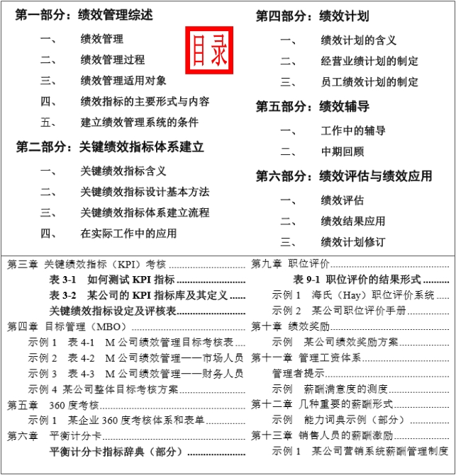 绩效管理是提升企业凝聚力和业绩非常有效的手段,本培训资料的内容包括:绩效管理学习手册(绩效管理的内涵、适用对象、绩效管理指标的主要形式与内容、绩效管理体系的建立、工作目标设定、经营业绩计划的制定、员工绩效计划的制定、绩效辅导与绩效评估等内容)、绩效管理与薪酬激励实操指南(绩效管理体系设计、绩效考核者应掌握的技能、关键绩效指标KPI考核、目标管理、关键岗位绩效考核、职位评价、绩效奖励、工资管理等内容)、绩效管理与绩效考核制度,此外,还提供了大约20个行业绩效管理的实际解决方案与案例。